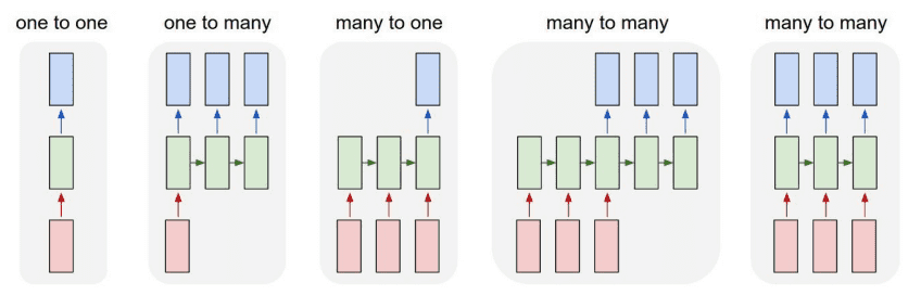| One to One | 단일 | 단일 | 지금까지 강의에서 다룬 아키텍쳐(Vanilla Neural network) |