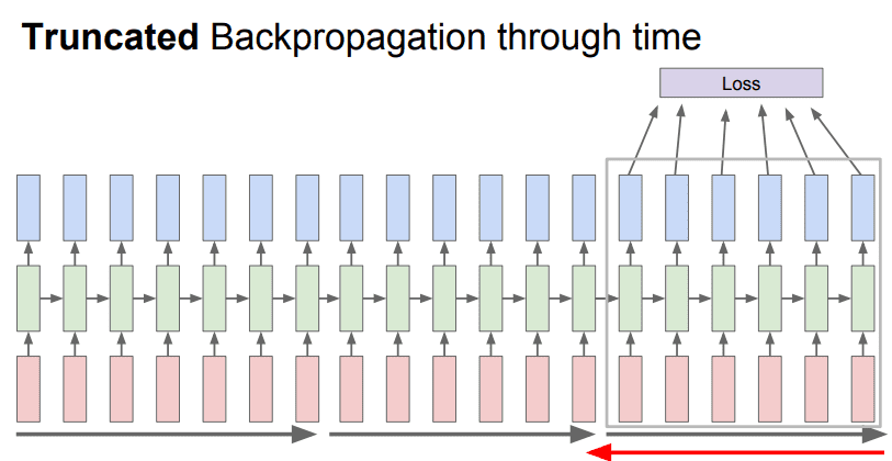 - Train time에서 전체 스퀀스를 적당한 step 단위로 잘라 해당 step이 지난 후 step만큼의 서브스퀀스 단위로 Loss를 계산하고 gradient를 계산한다.