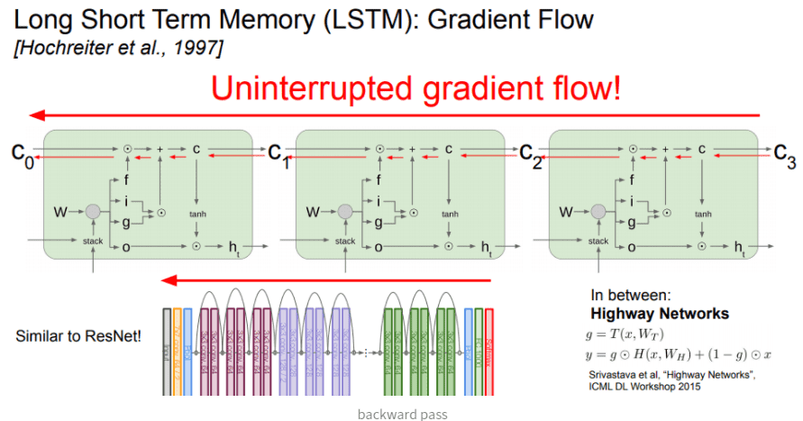 - C_t는 역전파 되면서 sum gate와 element wise gate만을 만난다.