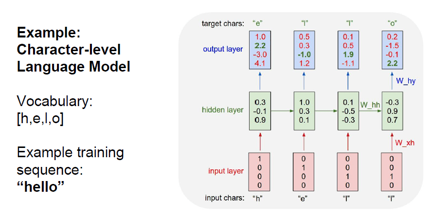 - h를 초기에 입력 → 출력 e를 얻음 → e를 입력 → 출력 l를 얻음 → l를 입력 → 출력 l를 얻음 → l를 입력 → 출력 o를 얻음 ⇒ h를 입력하여 hello를 얻음