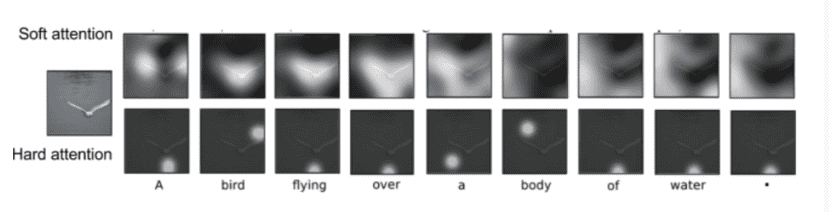 - Soft attention : 이미지의 모든 특징과 이미지 위치간의 가중합을 구해서 attention을 결정 👉 전체를 보는 대신 어떤 부분은 좀 힘을 줘서 본다.